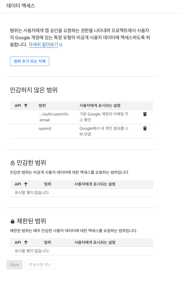 • openid 및 email 추가